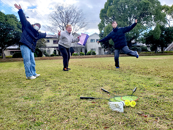 そして昼休みは、一部メンバーで近所の公園にて年忘れバドミントン大会?を開催しました。最初は2人のみ(寂)、そのうち1人増え2人増え、最終的には4人の仲間たちで行いました。遠州のからっ風の中、羽根が見事に吹き飛ばされ、ろくにラリーが続きませんでしたが、終始爆笑の中、心も体もリフレッシュすることができました。きっとこれで来年も良い仕事ができると思います。