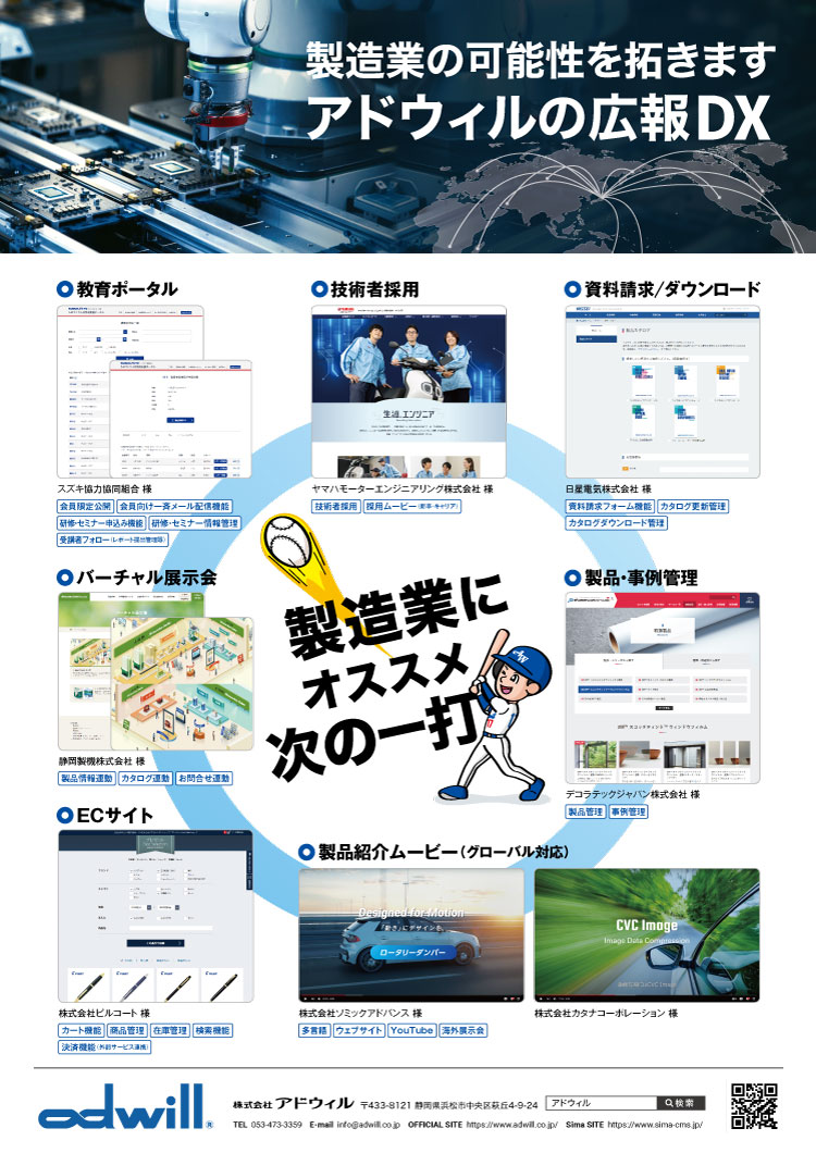 アドウィルは、2024年11月8日(金)・9日(土)にアミューズ豊田にて開催される「第14回 産業振興フェアinいわた」に、NPO法人浜松ソフト産業協会の一員として出展いたします。